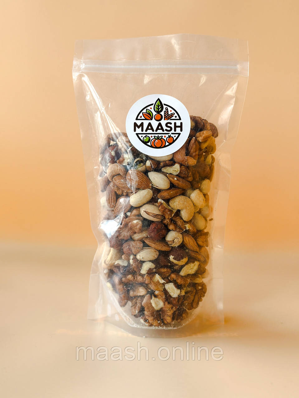 Ідеальний варіант для перекусу, додавання до сніданків, салатів або випічки. Волоський горіх і мигдаль у сирому вигляді зберігають максимум корисних властивостей, а смажений кеш’ю та фісташки додають хрумкої текстури й насиченого смаку.